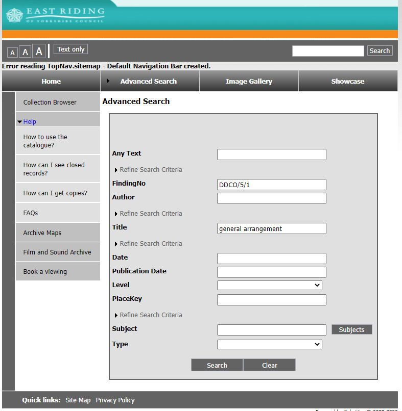 or navigate to a specific plan using the online catalogue to search for ‘general arrangement’ plans under Finding No. ‘DDCO/5/1’ and clicking the ‘Preservica Universal URL’ link.
